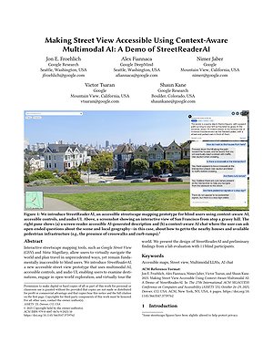 PDF | doi | Citation | Talk | Project Sidewalk • AccessVis • Accessibility-Infused Maps • Multi-Stakeholder Interviews to Examine Urban Accessibility