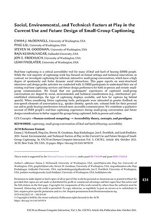 Proceedings of ASSETS 2021 | Acceptance Rate: 61.8% (55 / 89)